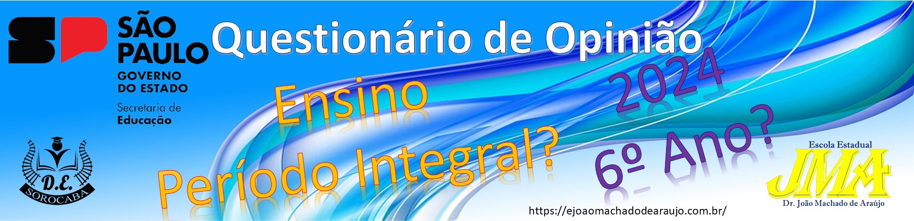 Este questionário de Opinião é basicamente saber se para o ano de 2024, a comunidade gostaria que a escola João Machado de Araújo, expandisse o seu atendimento para o 6º Ano, também se nossa escola poderia aderir ao “Programa de Ensino Integral”.